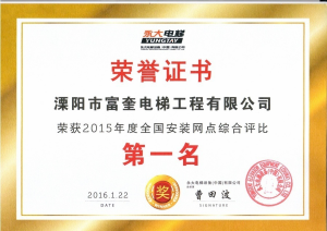 溧陽市富奎電梯工程有限公司 溧陽市富奎電梯工程有限公司是于二OO八年一月九日在原前身溧陽市電梯工程公司基礎上成立的,是專業(yè)從事電梯銷售安裝維修、保養(yǎng)的企業(yè)。是國家質監(jiān)總局頒發(fā)的特種設備安裝、改造、維修A級安裝許可證單位。公司組織機構實行總經(jīng)理負責制,公司下設管理部、銷售部、安裝維修部、質安部、財務部,公司另外設十二個分公司:四川分公司、江蘇分公司、上海分公司、浙江分公司、湖南分公司、遼寧分公司、山東分...
